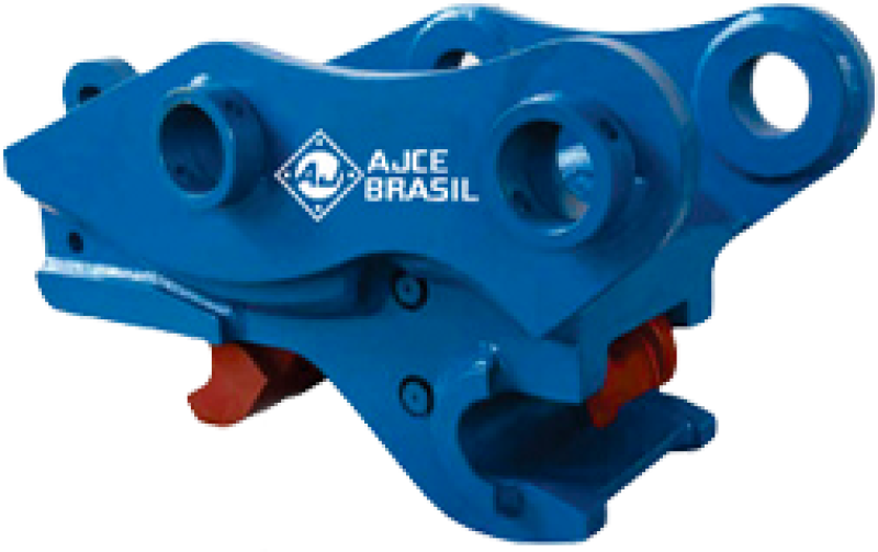 O engate rápido da AJCE Brasil realiza a troca entre concha e outros implementos no campo evitando assim riscos de acidentes ao manusear e martelar os pinos.